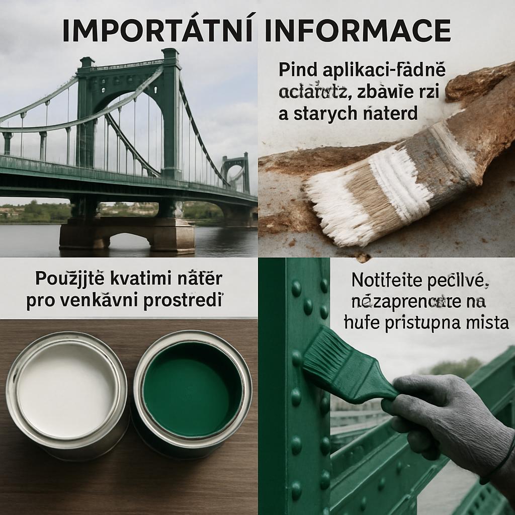 Před aplikací vrchního nátěru se vyplatí otestovat malou plochu a počítat s prodlouženým schněním v podmínkách Mostu. Příliš rychlé schnutí může způsobit praskání a odlupování. Naopak nadměrná vlhkost může zhoršit adhezi. Správná tloušťka vrstvy a rovnoměrný nátěr napomáhají k vyrovnané povrchové struktuře a delší životnosti.